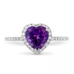 Para este San Valentín 2019 hemos diseñado una joya muy especial: una sortija con una aguamarina talla corazón rodeada de diamantes. El mismo modelo lo hemos diseñado también con amatista, la piedra del amor por excelencia.