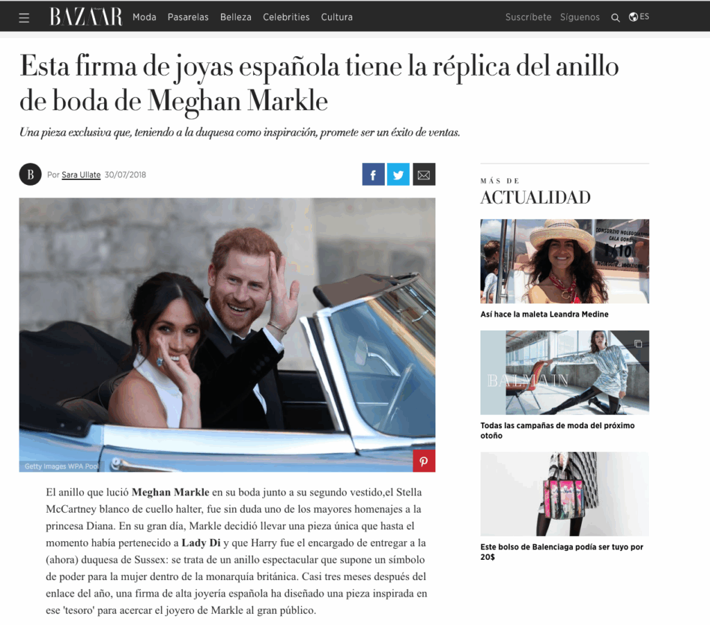 Esta firma de joyas española tiene la replica del anillo de boda de Meghan Markle