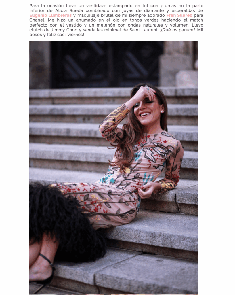 Paula Ordovás luciendo joyas de diamantes y esmeraldas