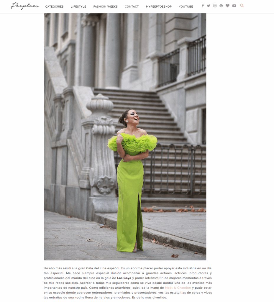 Paula Ordovás luciendo joyas de diamantes en los Premios Goya