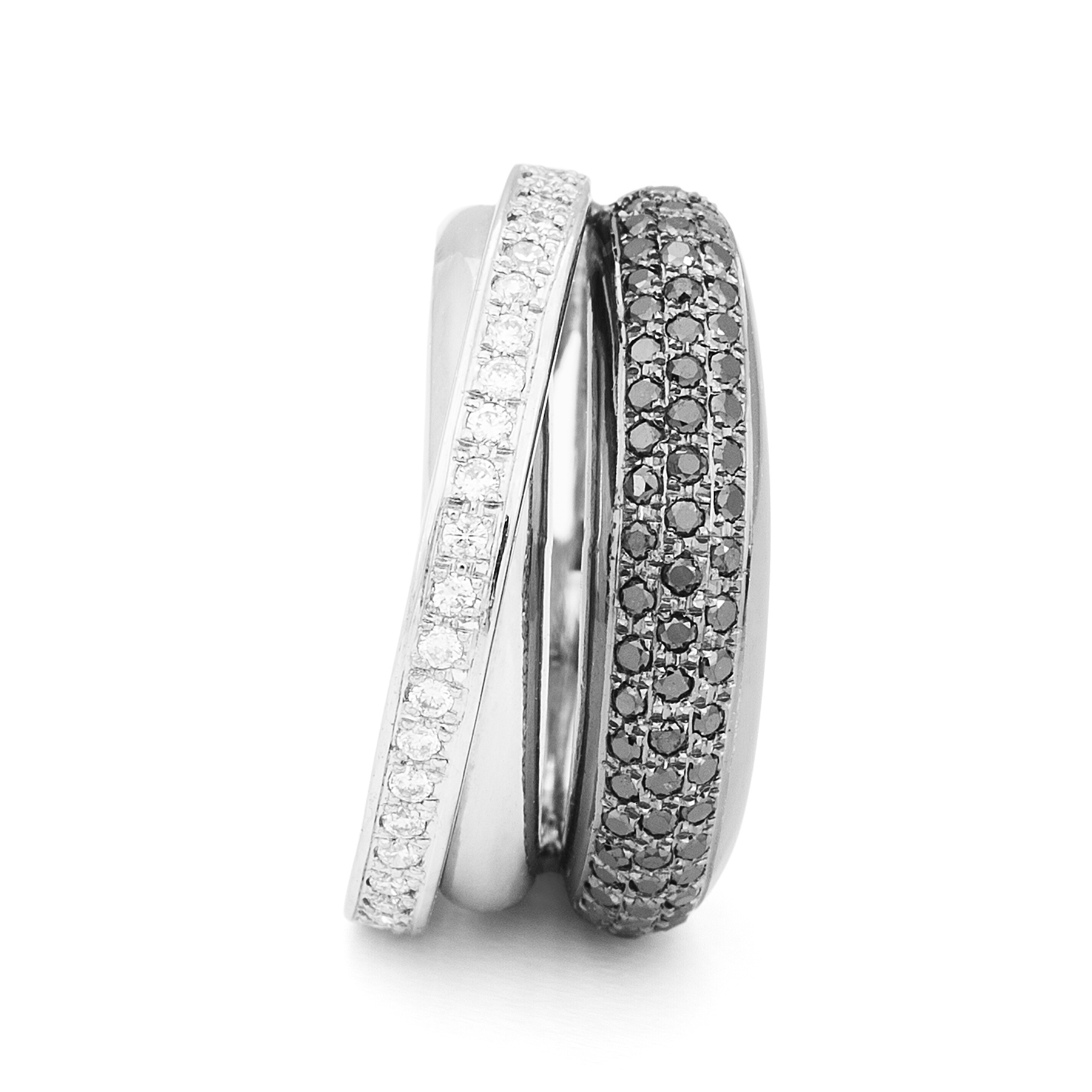 Anillo de oro blanco de 1ª Ley con diamantes HVS y diamantes negros.