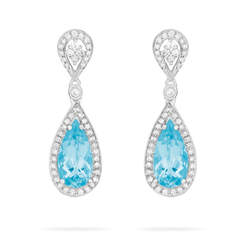 Pendientes de oro blanco de 1ª Ley compuestos por topacios azules y diamantes talla brillante.