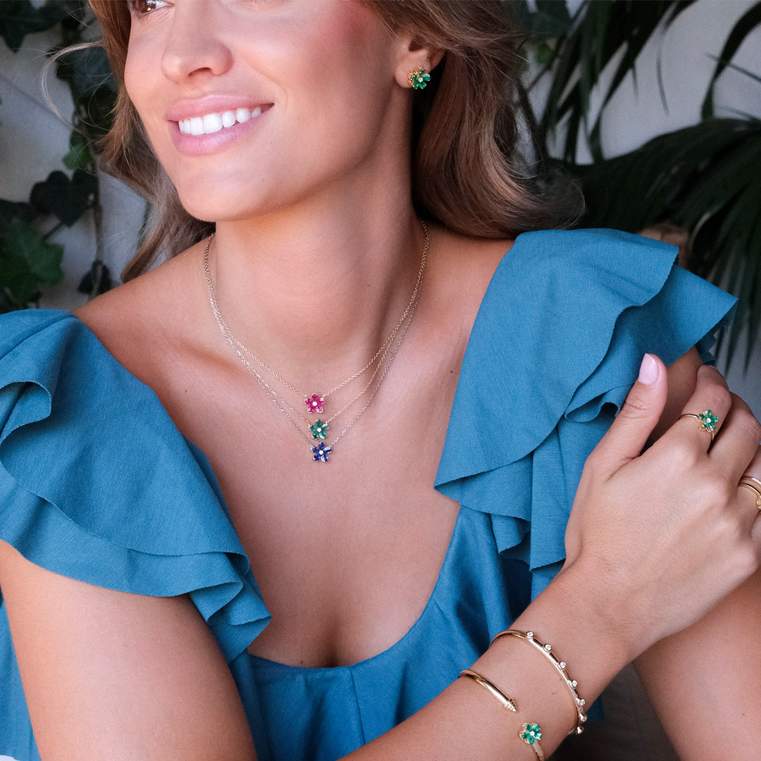 Las piedras finas han sido extraídas de manera ética y responsable, siguiendo las pautas de los acuerdos internacionales, y son engastadas una a una minuciosamente.
