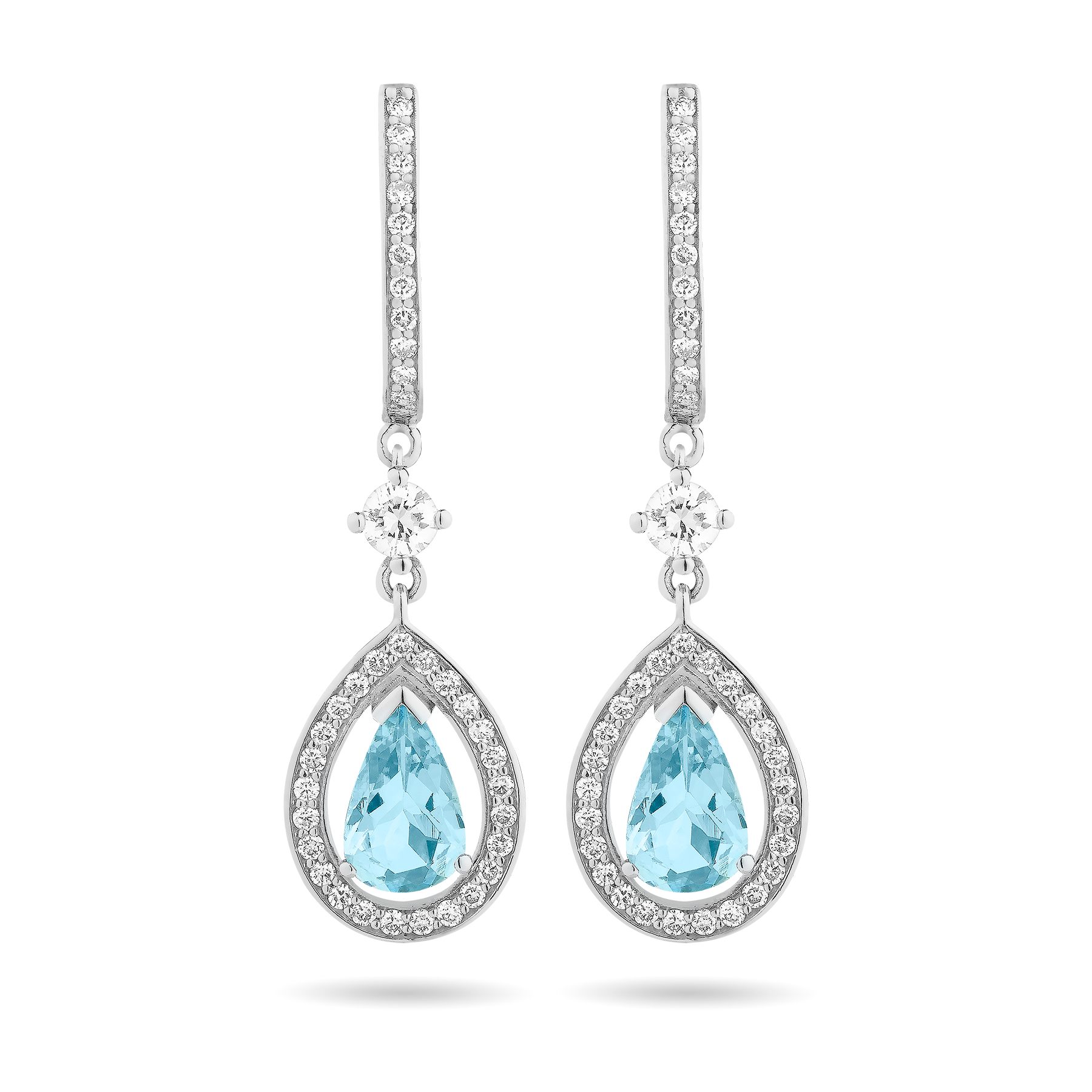 Pendientes de oro blanco de 1ª Ley de 18 quilates con aguamarinas talla pera y diamantes talla brillante (0,37 ct).