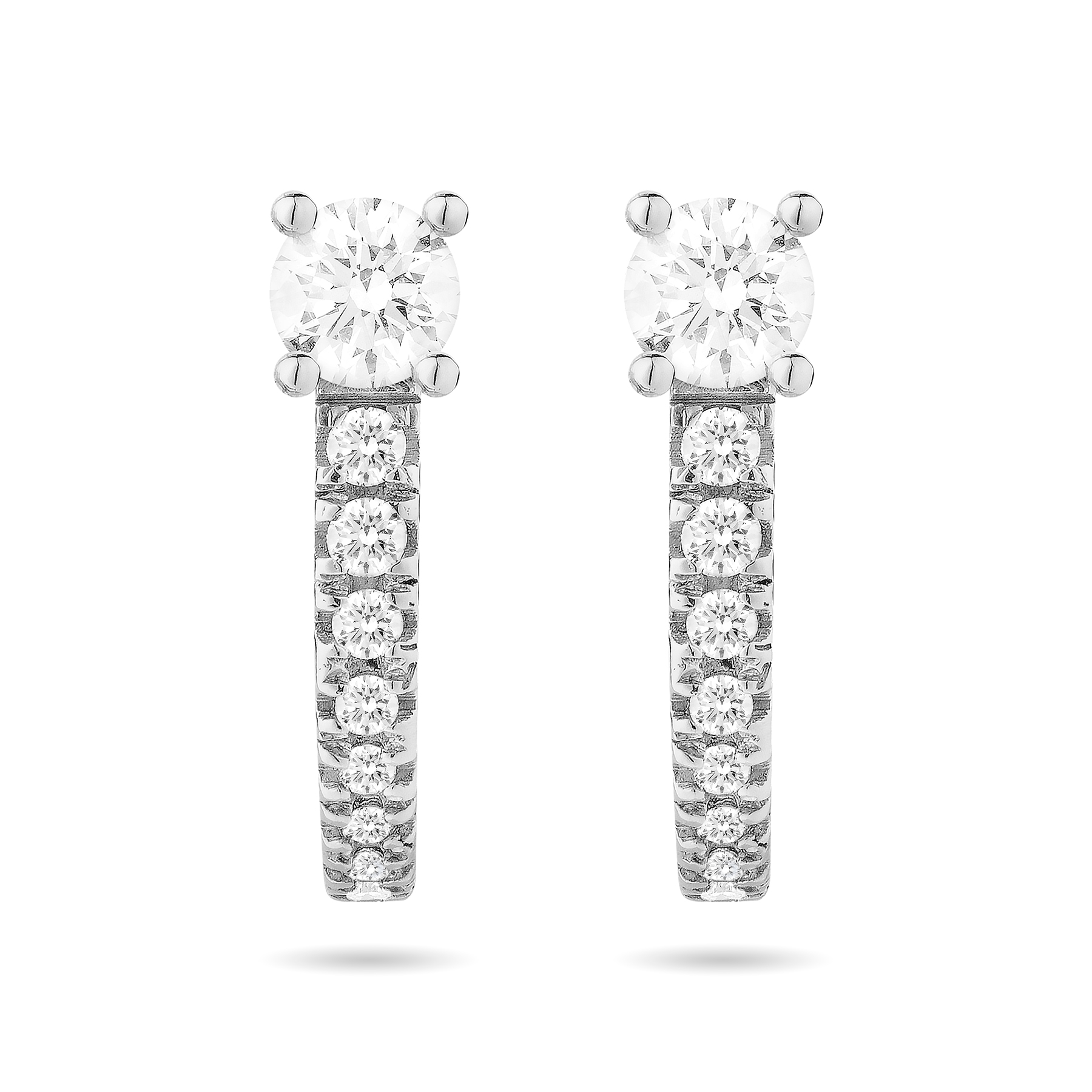 Pendientes de oro blanco de 1ª Ley con dos diamantes centrales (0,37 ct.) y dieciséis diamantes talla brillante (0,14 ct.).