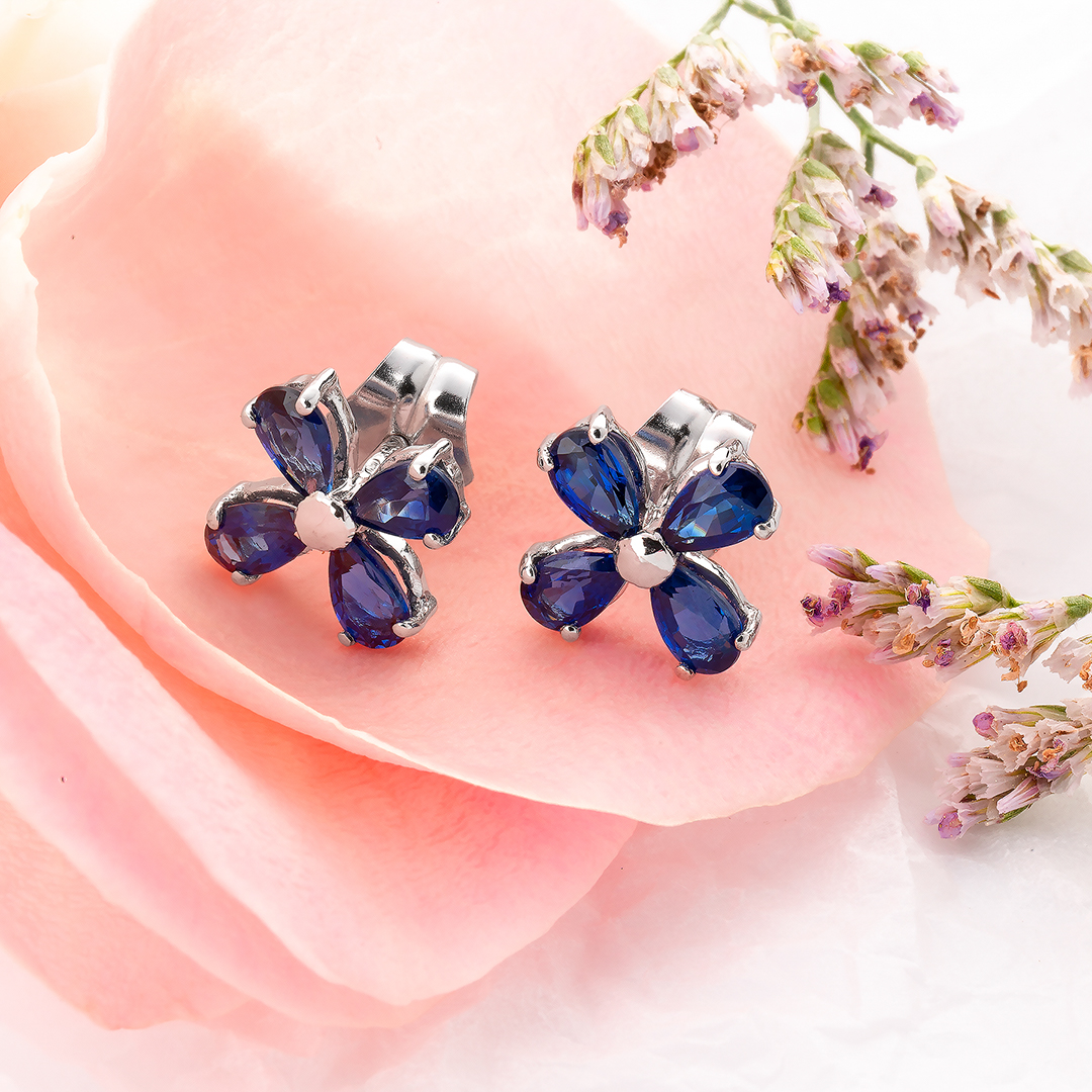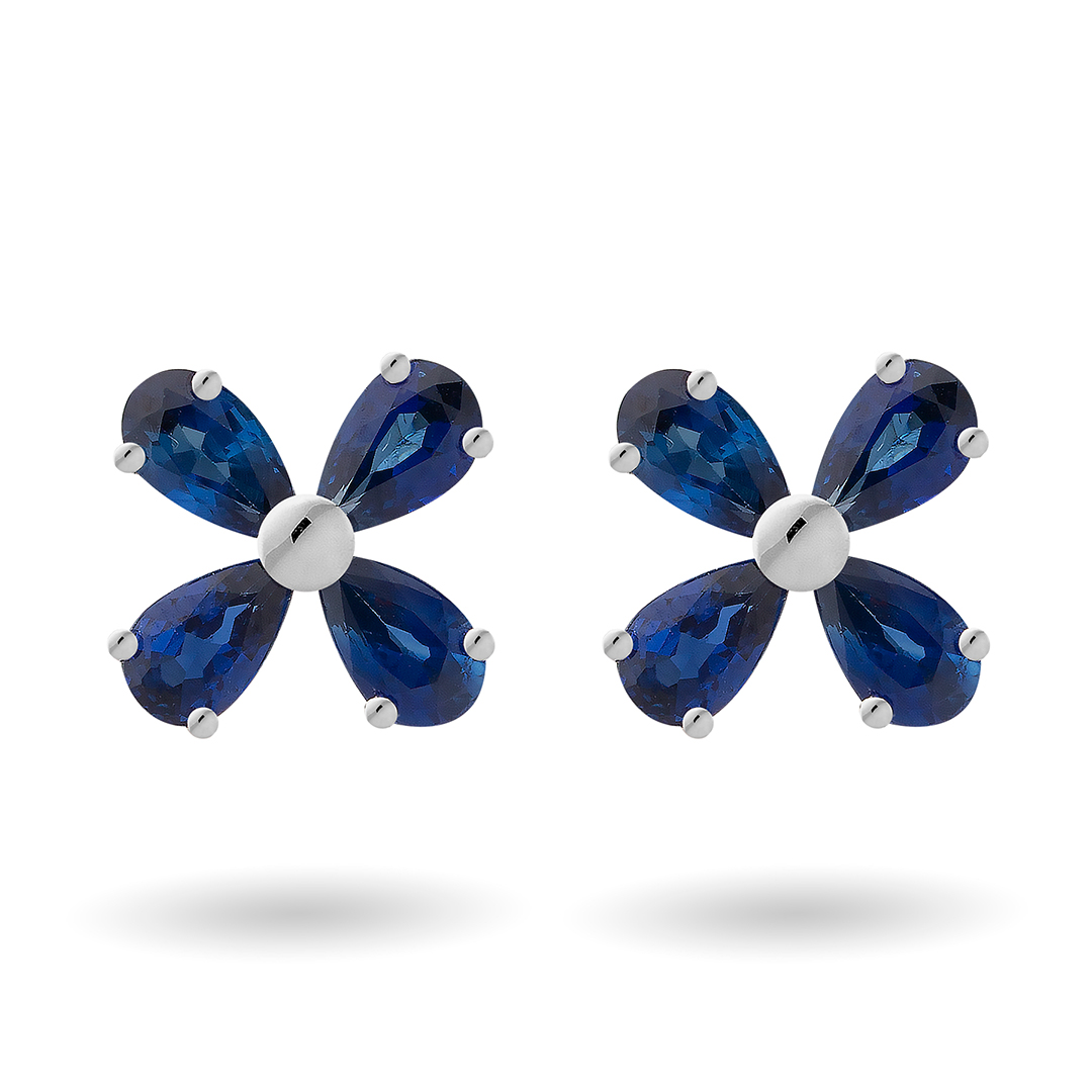 Pendientes de oro blanco de 1ª Ley de 18 quilates con zafiros en forma de trébol.