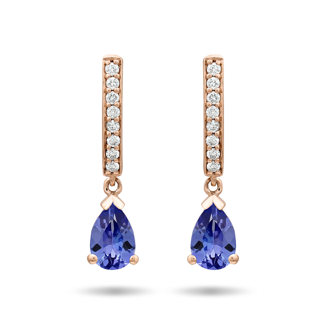 Pendientes en oro rosa de 1ª Ley con tanzanitas talla pera (peso aproximado de 1,03 ct) y diamantes talla brillante (0,11 ct).